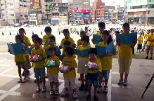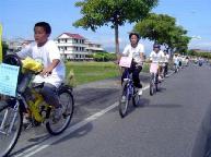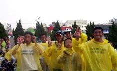 十五日青少年单车队伍绕行嘉义市区,吸引了街道两旁的人车民众的眼光。在“普度”“济世”音乐声中,学员沿途派发传单及适时的向民众讲真象。当民众知道这些小弟子青少年是从台北骑下来,活动的目地是希望呼吁大家营救在中国因修炼法轮功而被迫害的孩子时,脸上的表情既惊讶又感佩。
