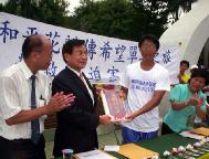 8月14日抵达云林县斗六市火车站,记者发布会中张硕文先生代表来宾致词时表示:久闻法轮大法的玄妙及好处,家姊也是法轮功学员,将来有一天自己也可能成为法轮大法的修炼者,希望对岸江氏集团停止对法轮功学员的迫害,因为教大家做善良好人的法轮大法真的好!