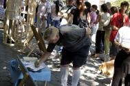 今年68岁的马女士表演的关在笼子里遭受折磨令来往行人心碎,很多人主动要法轮功真象传单。马女士4年前来美国探亲,看到以前病歪歪的女儿全变了样,不但身体好、性格也更好了,并且看到其他法轮功学员都很好,不象国内宣传的那样,很快自己就炼上了。原来的高血压、心脏病随之也不翼而飞了。