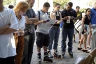 ![]() 很多美国人主动签名呼吁停止迫害 | ![]() 法轮功学员表演功法,其中有一个十岁的小女孩 | ![]() 来来往往的行人驻足观看真象图片 |