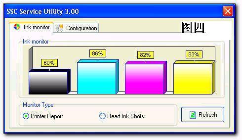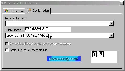 如图四所示,在主窗口中,我们可以设置打印机类型、墨水检测和检测程序配置的相关选项,还可以决定是取消还是加载墨水自动检测功能(在SSC程序报错时很有用)。