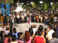 除了展示法轮功功法以及让人们明白迫害真象外,法轮大法学员也为雅典市的人们表演音乐节目及舞蹈,一名来自台湾的表演者展现甜美的舞姿,一群女士搭配“莲花颂” 歌曲表演伞舞。还有学员演奏中国传统乐器及歌唱,来自德国的学员则演唱“法轮大法好”。大批群众深受这种小型的户外音乐会的吸引。