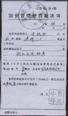 付汝环和其他大法弟子一起绝食,2月26日,张良带一个女人来给她们强行灌食,把小手指粗的管子野蛮的从鼻孔捅進去,然后就开始灌。流食一灌進去,管子里就直冒鲜血。管子扯出来时完全被鲜血包裹着。从那以后她就开始吐血、咳嗽、吐痰不止,瘦的皮包骨。生活不能自理,上厕所都是别人扶着她走。即使这样,她还被非法关押了四十多天。出来时张良才开了一个拘留15天的拘留证,没有填日期。