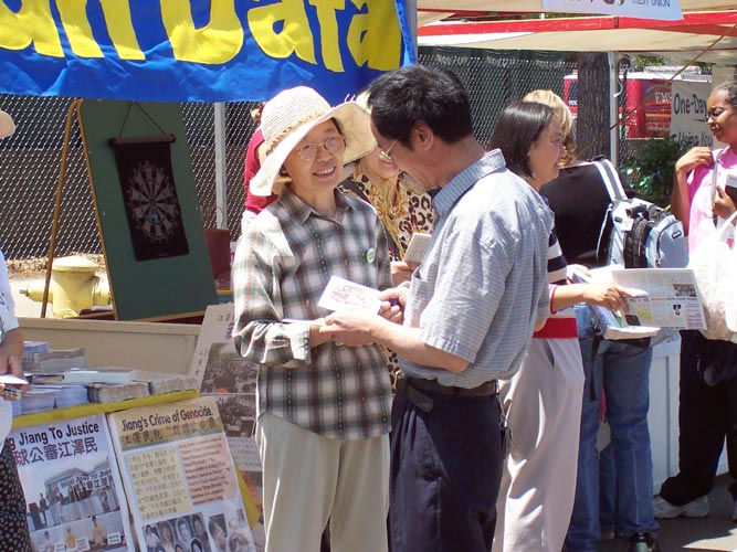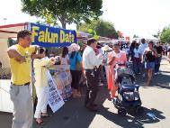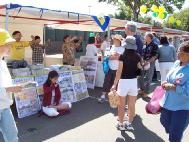 许多人都表示听说过法轮功。有一位老奶奶在被问到有没有听说过法轮功时,她说,“听到过啊,在中国大陆,政府都说不好。”学员就告诉她法轮功学员都是按照真、善、忍去做的,中国江氏集团看到那么多人炼功,出于妒忌开始镇压,编造了很多的谎言来维持镇压。老奶奶说,“我都知道,我都知道,我们都是从中国大陆来的嘛。”