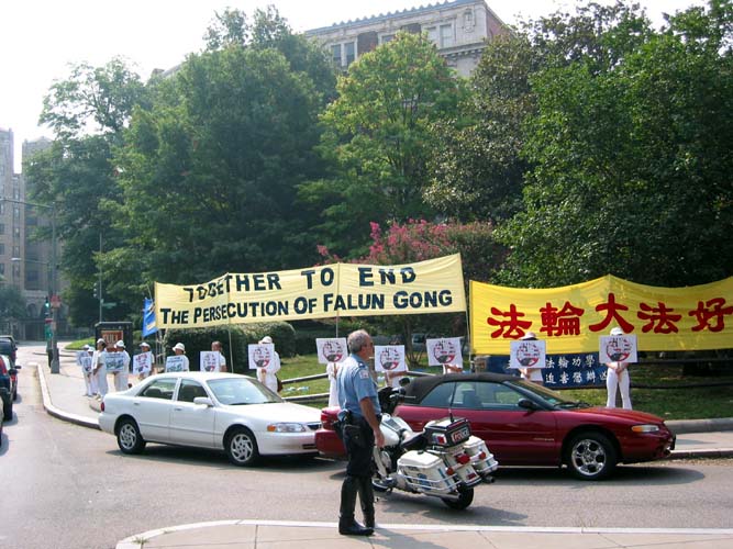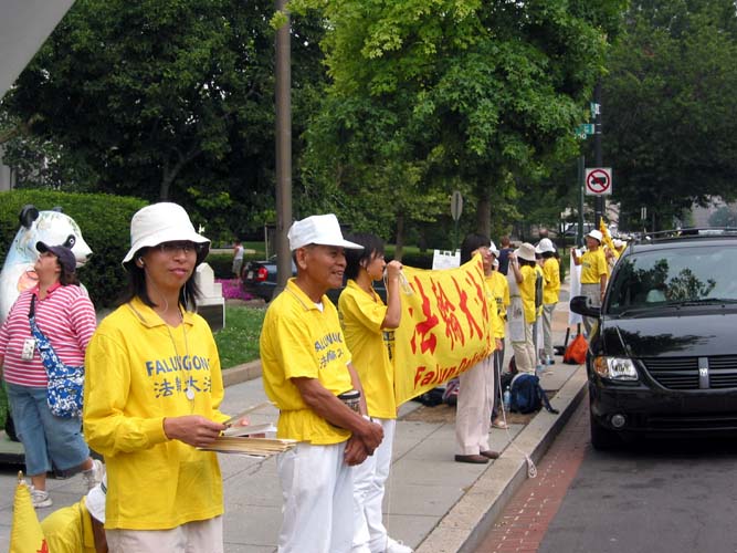 第三天一早,便前往林肯纪念堂前集体炼功,并在接近中午时前往参加“勇气长城”,呼吁停止在中国对法轮功学员的迫害