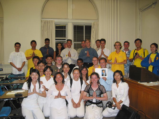 第二天参加完DC的游行后,前往参加青年学子交流,在此我明显感觉到西人学员们在证实法的步伐上所展现的坚定与无畏。反观自己,每当校内展开征签活动或洪法活动时,总要许久才能放下“不好意思”的观念,真是正念不足。我们几个台湾学员因时间关系而先离开,回到台湾后才发现当天的活动照片中,明显可看到法轮。
