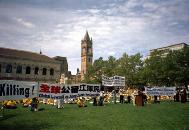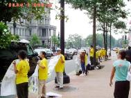 中国驻美大使馆是到华盛顿DC的法轮功学员经常去的地方,那里每天都有学员风雨无阻的在和平抗议,要求江氏集团停止迫害法轮功。2004年7月23日上午,部分台湾学员抵达中使馆前和平请愿,迎接“营救中国受迫害儿童青少年单车之旅”的车队,他们有的远从加拿大骑到华盛顿DC,精神可嘉。多位参与的孩子在记者会上发表演说,谴责江氏集团迫害法轮功修炼者并要求停止利用教育系统毒害中国青少年使其反对法轮功。