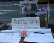 比如用一幅反映酷刑的图画,配上“Happening in China NOW”(正在中国发生)(而不是有些西人学员爱说的“中国:停止镇压法轮功”,因为冤有头债有主,并不是“中国”在镇压法轮功,而是江泽民等几个邪恶坏人在维持这场镇压,所以把矛头直指中国是不对的,也容易伤害一些人的感情),或者“请帮助制止对法轮功的迫害/Help Stop the Persecution of Falun Gong in China”的文字说明;