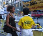(暂时没有便携展板的外地学员请注意,有些纽约人不拿传单是因为常会遇到有人在街头做商业宣传,或者募捐,他们有戒备心理。如果你告诉他只是请他读一读、知道一下情况,他可能就接受了。)