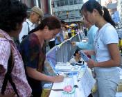李博士:从,我是从华盛顿D.C来的,从我们当地整个的情况呢,一般办这些大的活动啊,主要的一些支出呢,就像做这些展板啊,横幅啊,从我知道的情况,全都是学员凑的钱,有这么一个活动,大家愿意来参加,需要的一些费用呢,有的学员就主动的把这些材料都买了。我们这么一个大的地区,华盛顿DC呢,有很多学员炼功,从99年到现在,五年当中办的活动算是最多的,一年比一年活动的规模也要大。我所了解到的情况,所有的费用都是学员能够支付得起的情况下,从自己的工资里头拿出来的。