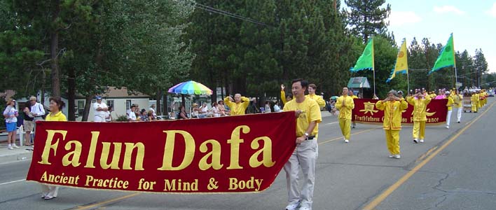 加州洛杉矶法轮功学员参加大熊湖社区游行(图)