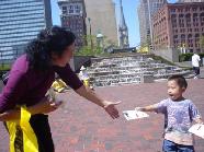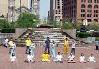 【明慧网2004年8月5日】(明慧记者王静菲报道)2004年7月30日至8月2日,世界青少年奥林匹克运动会在美国俄亥俄州克里夫兰市举行,来自台湾、加拿大、美国俄亥俄州、纽约、芝加哥、华盛顿等地的近百名法轮功学员汇聚在克里夫兰市,向来自世界各地的游客展示功法和法轮功学员创编的丰富多彩的艺术节目。