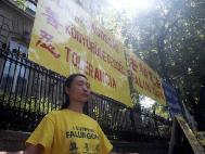 ![]() 中领馆前请愿 | ![]() 发正念 | ![]() 宣读声明 |