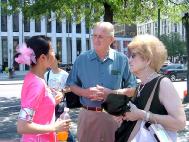 人流一波又一波的观看;舞蹈一场又一场的表演;资料一摞又一摞的派发;真象一个又一个的快讲。看到这番热闹景象,纽约时报、NBC News等大媒体的记者也纷纷進行了采访报导。有一对夫妇是共和党竞选的支持者,他们详细了解了真象后,表示一定会给共和党汇报这些情况。他们问学员:“你估计中国对法轮功的迫害会持续多久呢?一年?两年?或者十年?二十年?”学员回答他们说:“我相信不会太久了!”他们说:“我们祝你们好运!”