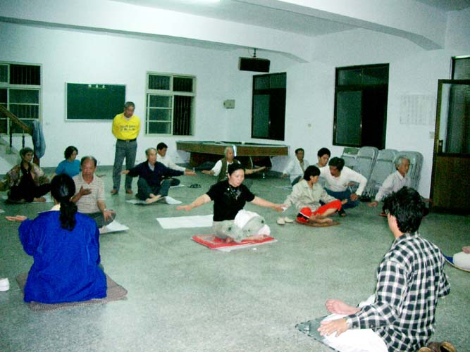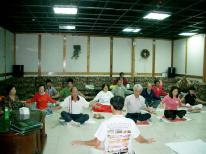 很顺利的在8月16日星期一晚上开九天班,介绍了传法的主题。开始播放师父在广州的第一讲。中场休息时,另安排竹崎--水道乡亲上来讲修炼心得,整个场是多么的祥和慈悲。第一讲结束后,再放师父的教功带,所有的新学员都非常认真的学习,在教完功后告知新学员明天早上五点钟在外面炼功─火车卸货站广场炼功,炼完功后七点通读《转法轮》第一讲。