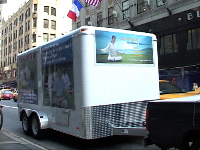 图片报道:911三周年 法轮功学员纽约街头揭露江氏国家恐怖主义