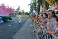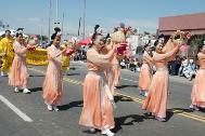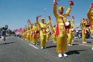 法轮功学员制作的高雅的花车、优美的功法表演、传统的中国舞蹈以及雄壮的腰鼓,受到了沿途观众的热烈欢迎。