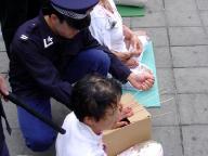 在这之前,学员们進行了充分的准备工作。下午,位于市中心的证券交易所前,一边是学员们祥和的炼功,另一边是学员们真人模拟的酷刑,有老虎凳,竹签扎指,囚笼等,并配以图片文字说明。来往的行人一下子被吸引过来,纷纷驻足。人们被眼前的这一幕震惊了。 非常多的人都无法相信当今世上还有这样的暴行发生。很多过往车辆的司机也纷纷索要资料。