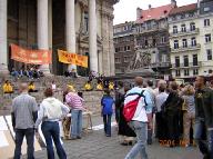 揭露江氏恐怖主义 法轮功学员布鲁塞尔反迫害(图)