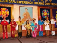 有几个电视台记者说,早就听过有关法轮功的事,只知道法轮功在中国被迫害、被镇压,却没想到法轮功的文艺队伍,竟然这样精彩,腰鼓队,仙女装,都是正宗的盛唐文化!记者们感叹道:法轮功人怎么个个脸上一片阳光,承受了那么多迫害,没有一点压抑或仇恨的表情!