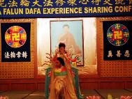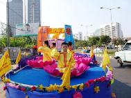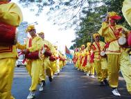法会的前一天,法轮功各地区学员举办游行活动,游行队伍长达1公里。游行中有花车,功法演示,酷刑展,“审江”,目地是把江氏残酷迫害法轮功的恶行曝光。