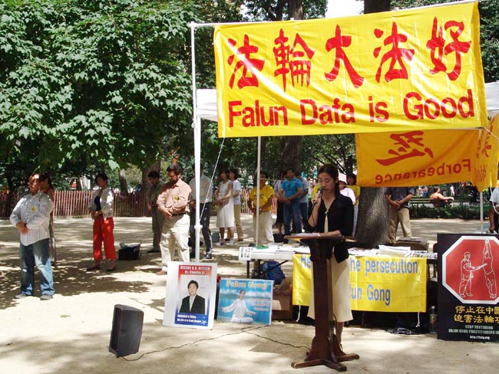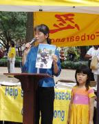 至今仍被中国政府非法关押的美国公民李祥春的未婚妻符永清在会上发言,要求立即释放李祥春,立即停止对法轮功学员的残酷迫害。