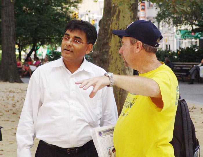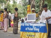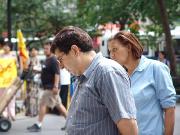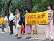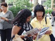 澳洲学员戴志珍带着4岁的女儿小法度来到纽约,告诉人们她的丈夫因不放弃修炼法轮功而被折磨致死的悲惨故事,呼吁人们关注中国大陆法轮功学员的基本人权,共同制止这场惨无人道的对善良人民的迫害。