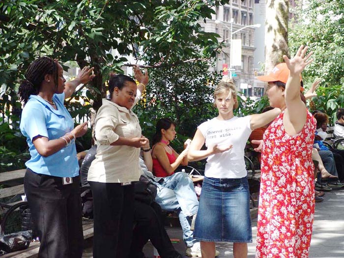 一些民众被现场的功法表演所吸引,当场学炼起来