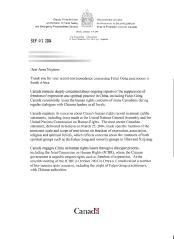 加拿大副总理致信关注法轮功学员在中国受到的迫害