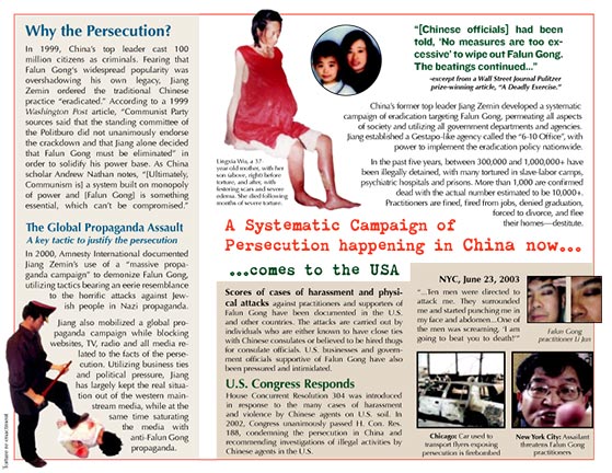 英文传单:江泽民在中国对法轮功的镇压影响到美国人