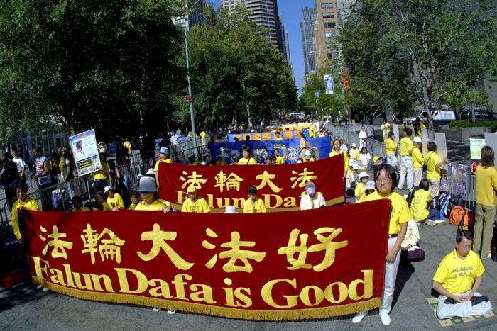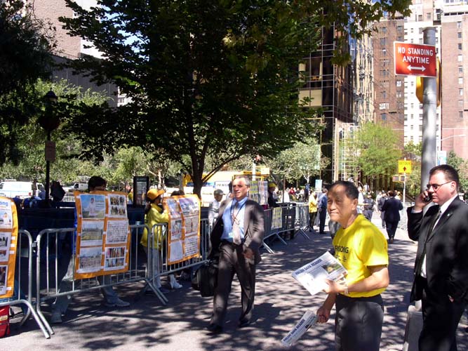 【明慧网2004年9月23日】2004年9月20日至24日,联合国大会第59届会议在纽约总部召开。9月21日也将是联合国设立的国际和平日。在清风送爽的初秋,来自世界各国的法轮功弟子再次齐聚纽约,平和的向世人展示着法轮功的美好祥和,告诉着人们法轮功在中国以至世界范围内受到前中国领导人江××的残酷迫害的真象。