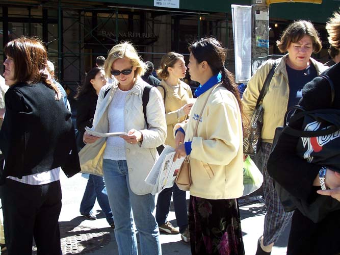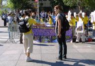 一位路人说,美国对发生在中国的迫害没有给予太多的关注。我要让媒体都来报道这件事情。现在的媒体都把注意力集中到伊拉克问题上,这太荒谬了。应该将焦点集中到这件事上了。让所有的人都知道迫害,制止迫害。