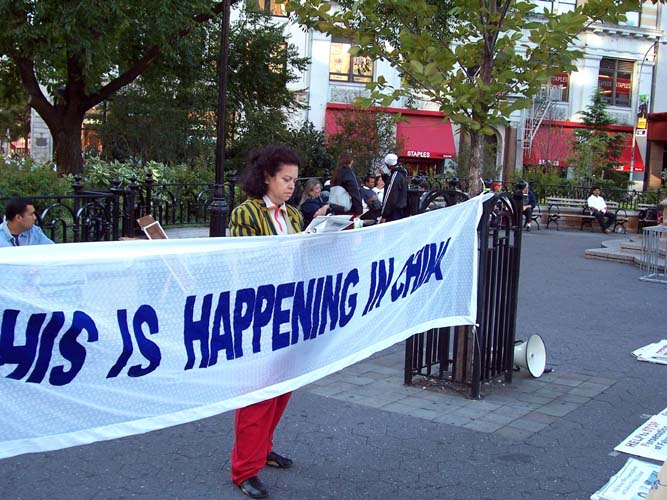 本周在曼哈顿每天都有8-9个反酷刑展示点,获得了很好的讲真象效果。
