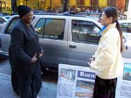![]() Norna和妹妹Jennifer向路人讲法轮功真象 |
