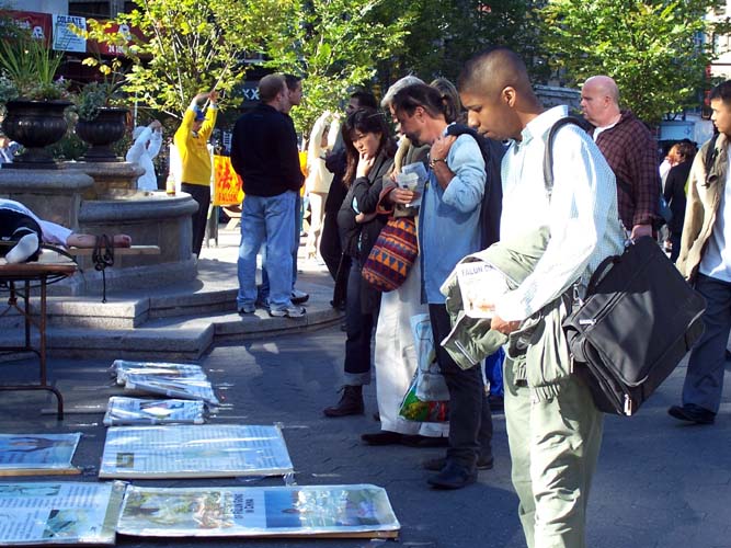 在联合广场(Union Square),一位从新泽西州普林斯顿来的女士LISA对记者说,她是在新泽西州知道法轮功的。他说在普林斯顿也有法轮功学员。她看过介绍材料,知道在中国发生的迫害。她说:“我认为在中国发生的对法轮功学员的迫害是个悲剧。在那儿,人们不能行使信仰自由的权利。”她并在请愿簿上签上了名字,她说信仰自由是人与生俱来的权利。