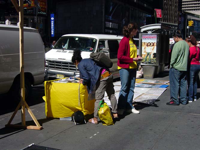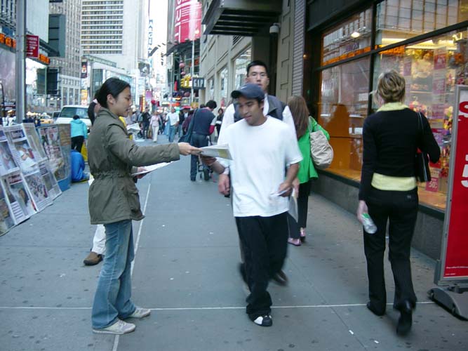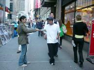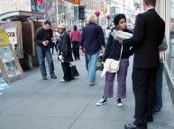 纽约曼哈顿42nd街和百老汇大道以及42nd街和第七大道上的讲真象活动。这里是澳大利亚和台湾弟子讲真象活动的地点。说两个在这里发生的小故事。