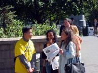 ![]() Norna和妹妹Jennifer向路人讲法轮功真象 |