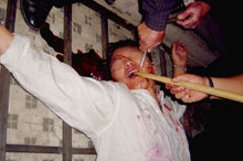 ![]() 胶皮棒击胫骨 | ![]() 胶皮棒抽脚心 |