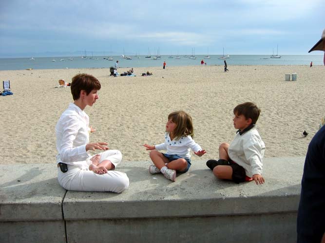 学员们结束了在集市的活动后,又前往附近的凯彼特拉市(Capitola )向那里的居民和游客讲清真象。凯彼特拉市在旧金山以南80英里,是滨临太平洋的海滨旅游城市,以海滩景点著称。那天该市正好在举办规模盛大的“艺术节和酒节”。几千名居民和游客在城区和海滩漫步。学员们来到海滩,展开大法横幅和展板。一部分学员在海滩上炼功,其他学员向游客散发传单。很多人,包括小孩,都想要学功,其中还有一个年仅3岁的小孩。