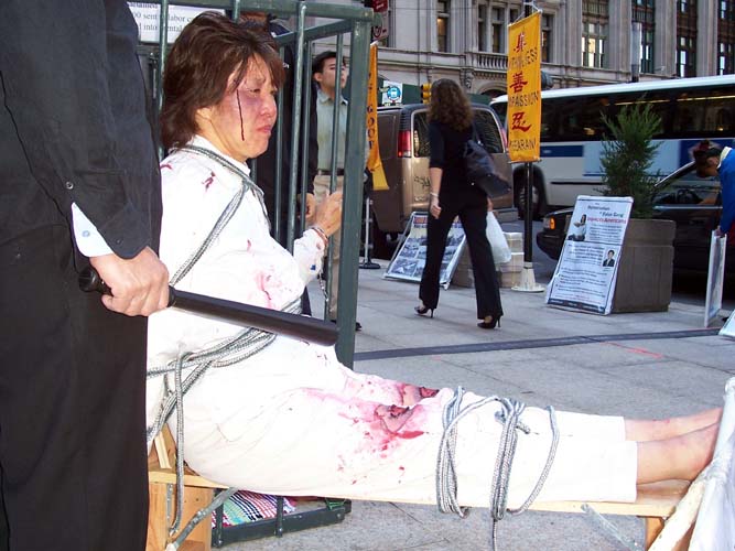 一名在华尔街上班的犹太人在看了真象展板和酷刑后问,这是现在还在中国大陆发生的事吗。学员说是的,这些迫害和酷刑现在就在大陆发生,而且我们所演示的酷刑只是很少的一部分。