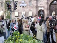 法轮功学员在议会广场还举行了反酷刑展,引起瑞典民众的反响。部分国会议员前来观看,并表示了对法轮功学员的支持。瑞典多家媒体到场采访了法轮功学员、律师和国会议员。