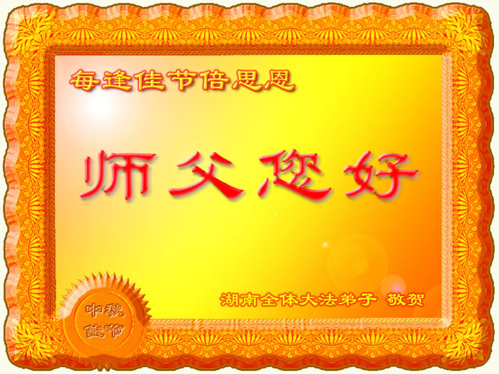 每逢佳节倍思亲。在此中秋佳节来临之际,郴州全体大法弟子向师尊问好!祝师尊中秋快乐!