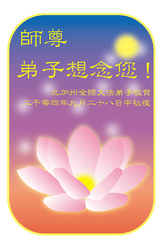 每逢佳节倍思亲,值此中秋之际,请转达北京海淀全体大法弟子对师父的思念,敬祝师父中秋快乐!