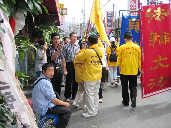 在沿街发传单讲真象的过程中出现了很多感人的场面,有位八十多岁的老奶奶在听到同修为她讲真象后,眼含热泪,激动万分,她握着这位同修的手一遍遍的用中国语说:“我可见到你了,我可见到你了……”很多中国同胞象见了久别的亲人一样,主动握着法轮功学员的手,认真的听着真象,特别是当游行队伍到达加里峰华人街时,一群观众连续三次朝游行队伍鼓掌喝彩,眼前的一幕幕既亲切又感人。