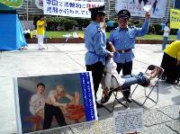 有个当地的中国人厨师,在下午休息的时候来到反酷刑展现场,他认真的听了几个弟子的讲解和金子容子的亲身体验后,微笑着拿着各种资料走了。