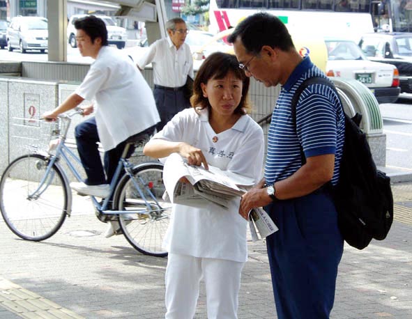 ![]() 大法弟子在向过路人讲清真象 | ![]() 大法弟子在向过路人讲清真象 | ![]() 大法弟子在向路人展示功法 |