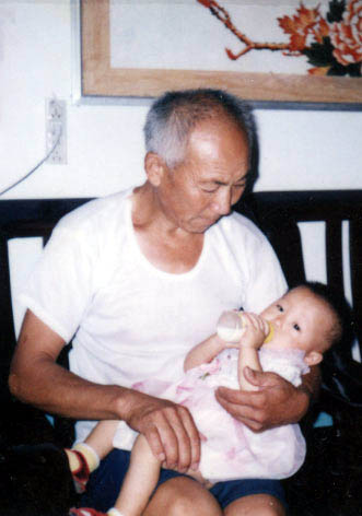 ![]() 开心出生五十天时,爸爸被劳教,奶奶照料开心的妈妈坐月子,奶奶和出生五十天的开心流离失所中照 | ![]() 爷爷和开心 |