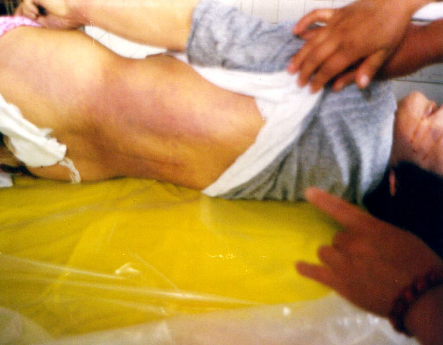 家人非常吃惊,因为杨玉方生前身体一直很健康,根本就没有得过糖尿病。当天晚上家属要求见杨玉芳遗体,不法人员不让见。第二天上午家属见了她的遗体,她右嘴角、右鼻孔、左耳均有淡红色血水,右脸下黑青,右手腕右臂内侧,右膝盖小腿处均有内伤肿块,后背右半部至臀部,大面积淤血。杨玉芳的家属们失声痛哭,他们不敢想象,一个好端端的健康开朗的人,不到一个月的时间内竞被迫害致死。仅仅因为她坚持真善忍的信仰,坚持用自己得法后身心受益后的真实情况向身边的百姓讲清真象,就被执法人员迫害致死。