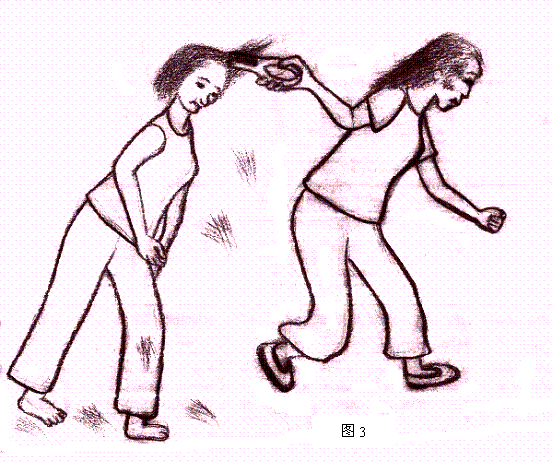 又经过这次酷刑折磨后,它们看还是“转化”不了我。在王友成的指使下,暴徒们又一次疯狂地对我迫害。2002年12月3日晚上,打手队长邱朝华威胁我说,现在你转不转化,写不写三书不管你了,只要你能写一份公开检讨书,在会上对其他法轮功学员说你自己以前弘扬法轮功是错误的言行就可以了,要不然你以后就更不会有好过的了。邱朝华看我不配合,就与几个暴徒狠毒地对我拳打脚踢一番,又象以往一样把我推按在厕所盆旁的地上。暴徒们往往是用拖把将厕所盆内的通道塞住后,再在厕所盆内盛满水。恶人们看我被毒打和灌水后倒在地上还是不肯写“公开检讨书” ,邱朝华指使暴徒黄秋菊(女)继续在我身上猛力乱踩乱踏毒打后还未罢休。邱朝华拿来一把大铁钳,叫暴徒黄秋菊拿铁钳子钳住我一撮头发往前跑。[见图3]这样我的头发被一撮撮地钳掉了不少。