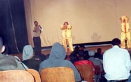 ![]() 在艺术表演厅展示五套功法 | ![]() 在艺术表演厅展示五套功法 | ![]() 上千观众观看学员们的功法展示 |